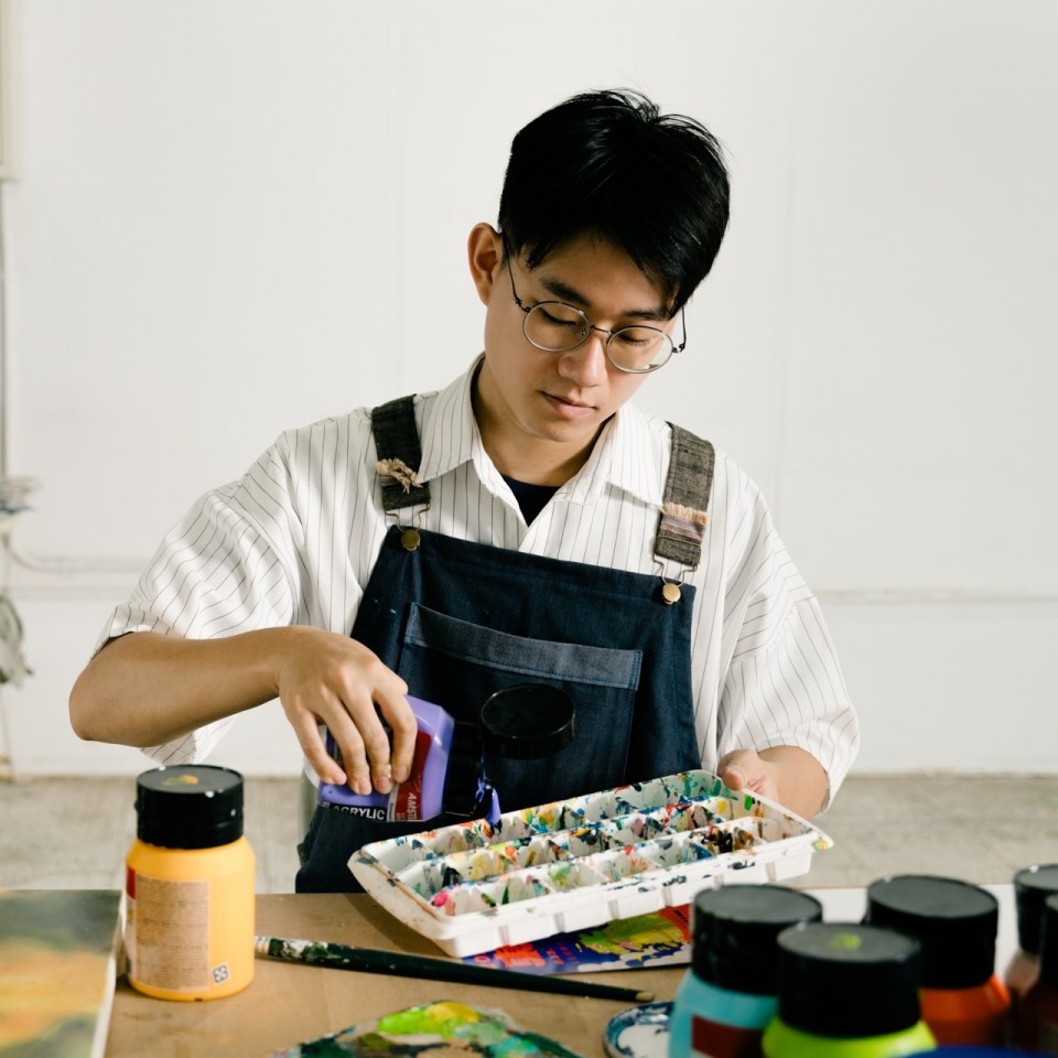 1993年出生於南投埔里。專職於油彩與壓克力繪畫。歷年創作是對周遭環境的觀察及感受,提出人跟自然共生的狀態,試圖去探討被人習以為常的環境,用抽象化與拼貼式的繪畫手法,暗示我們對自然的美好想像常是一廂情願,片面式的理解世界。創作也以另一角度去呈現自然的生命力,與突破束縛及規則的無理之姿。